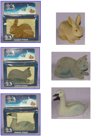 The back of the boxes had the special story, as well as the description and picture of the ANIMAL Friends in this series that could be collected. It had the item # 7703 imprinted on the lower corner of the back side. |